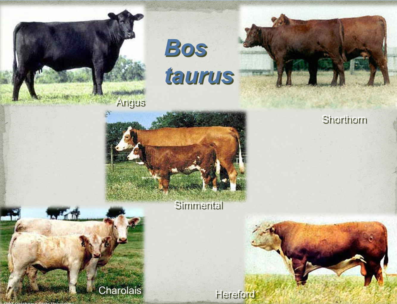 What are 5 Bos taurus breeds?