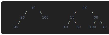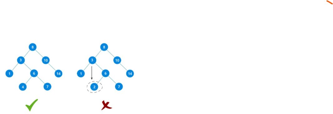 • All nodes of the left subtree are less than the root node
