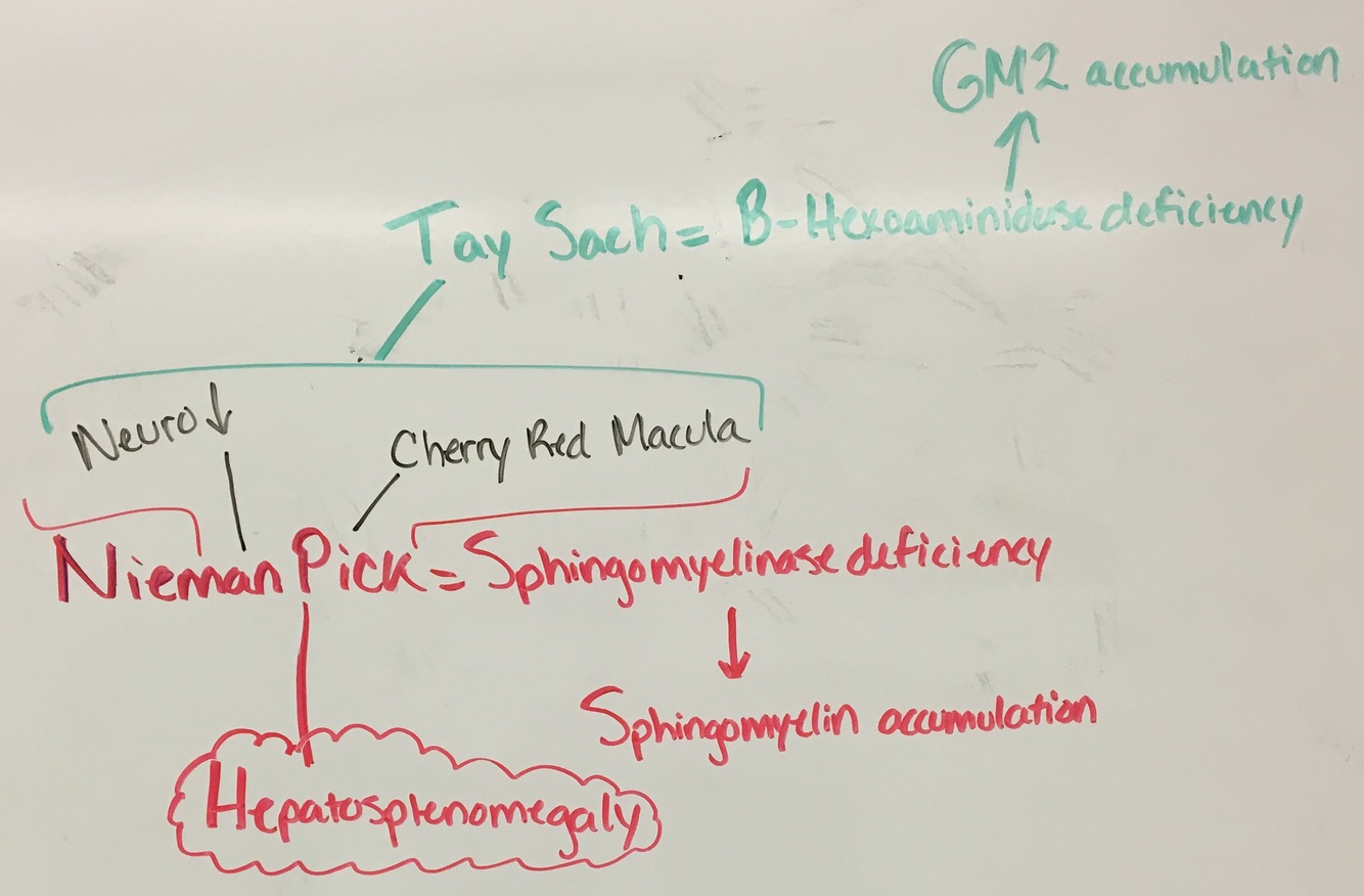 Sphingomyelinase Deficiency –> accumulation of Sphingomyelin