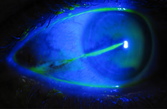 Evalutes for abnormalities of ANT eye (conjunctiva, cornea, ANT chamber, iris)