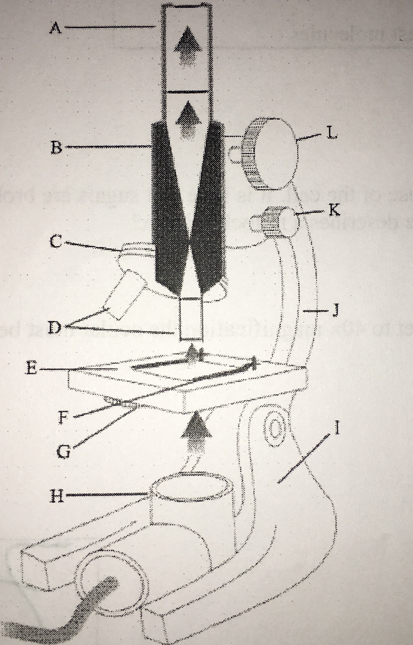 What letter represents the objective lenses on the diagram below?