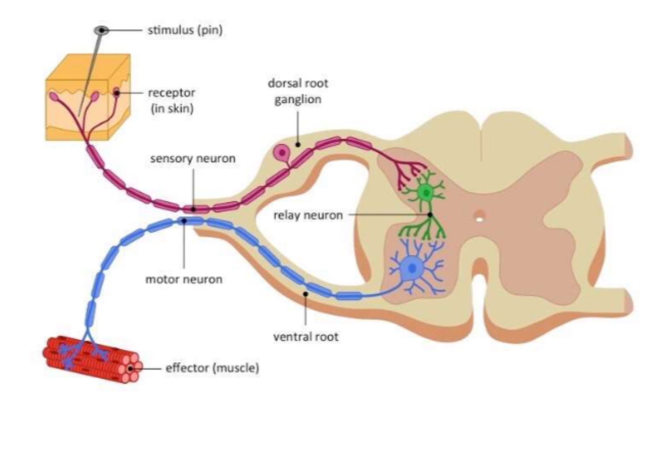 Relay neurons are found in the CNS. They connect sensory neurons to motor neurons so that they can communicate with one another. During a reflex arc (e.g. you put your hand on a hot hob) the relay neurons in the spinal cord are involved in an analysis of the sensation and decide how to respond (e.g. to lift your hand) without waiting for the brain to process the pain.