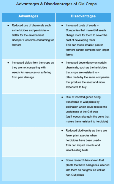 Crop plants have also been genetically modified to make them resistant to certain herbicides (chemicals that kill plants), meaning that when the herbicide is sprayed on the crop it only kills weeds and does not affect the crop plant