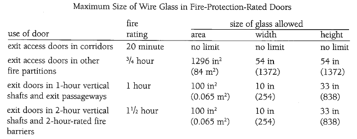 Maximum Size of Wire Glass in Fire-Protection-Rated Doors (interior only)