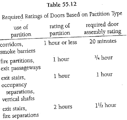 Required Ratings of Doors Based on Partition Type