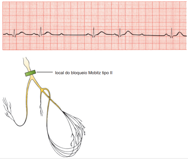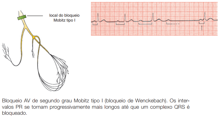 Alongamento progressivo de cada intervalo PR sucessivo até que uma onda P falha em conduzir através do nó AV e, portanto, não é seguida por um complexo QRS.