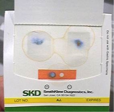 Interpret the following guaiac-based fecal occult blood test. Assume collection instructions were completed exactly as directed.