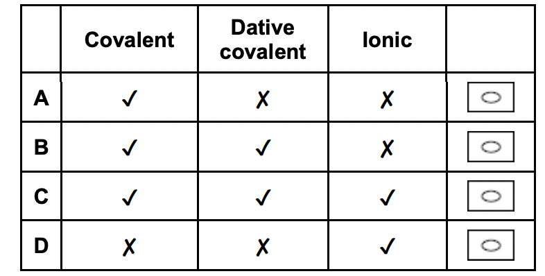 EQ: Which row shows the bonding in ammonium chloride?