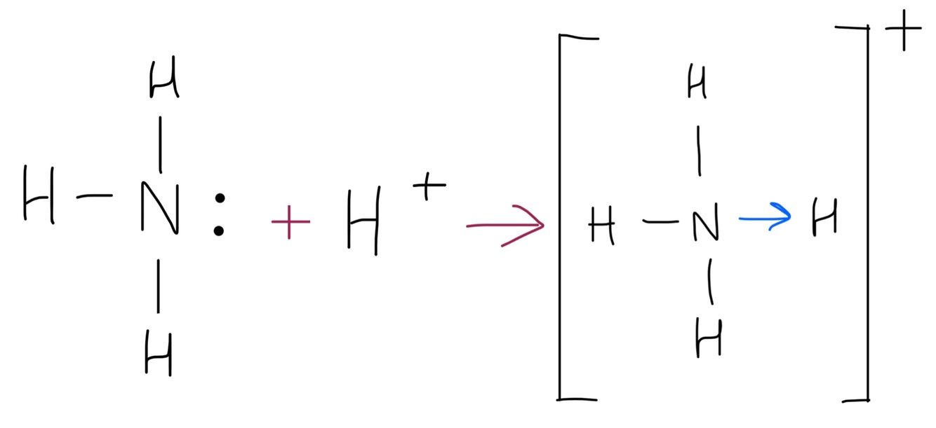e.g. lone pair of electrons is donated from N of NH3 to H+ to form NH4+ :