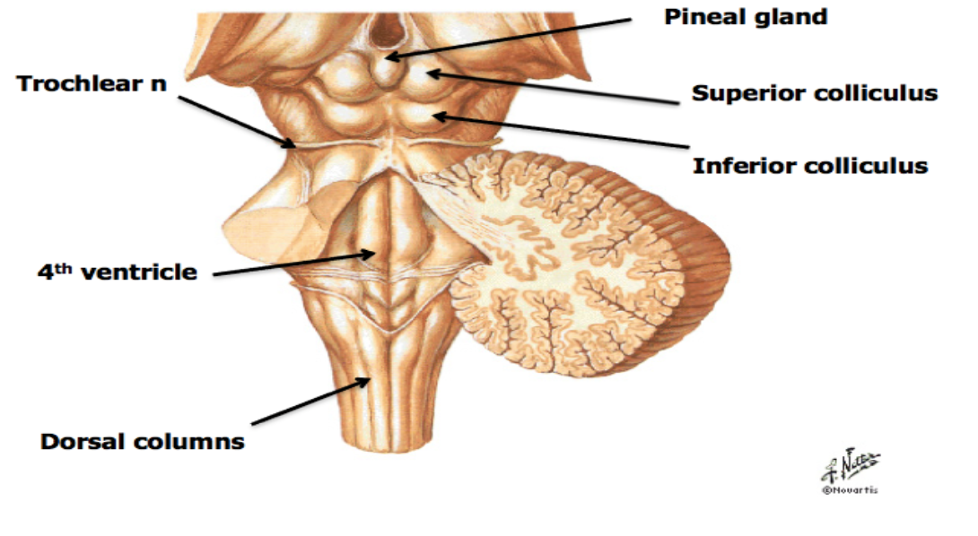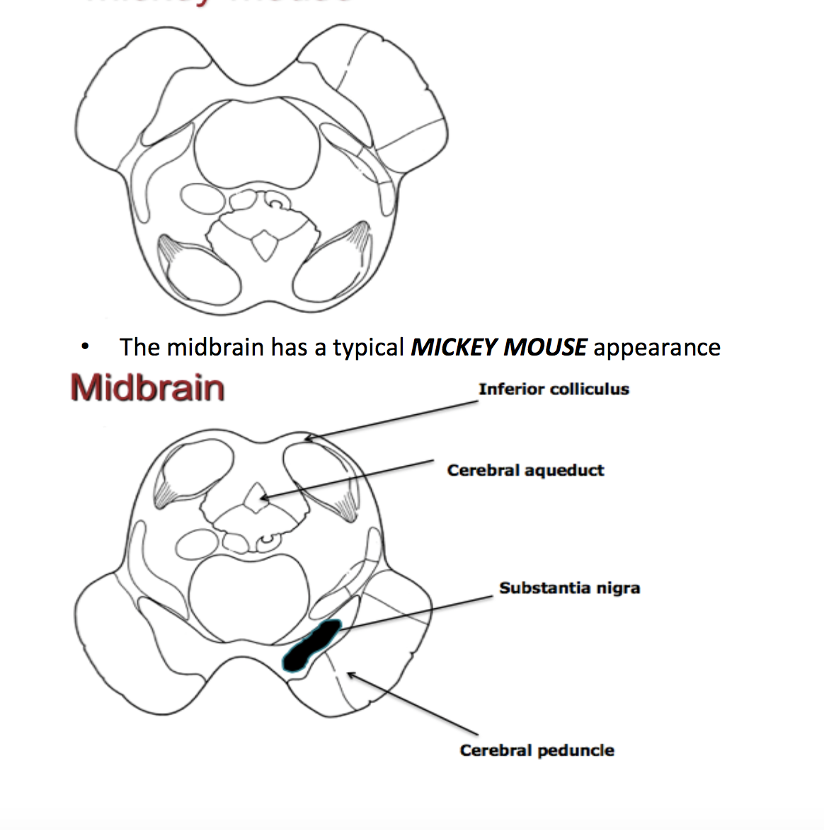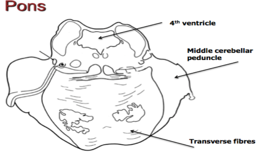 The pons is very clear because you get the transverse fibres going across it - above this is the midbrain and below is the medulla oblongata