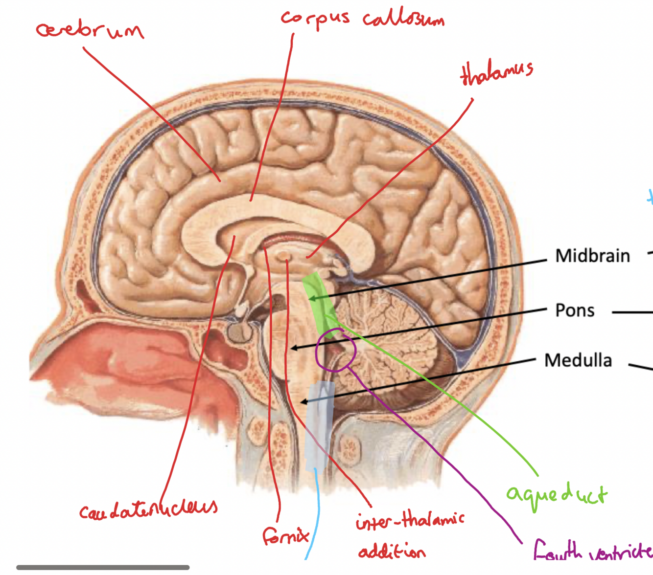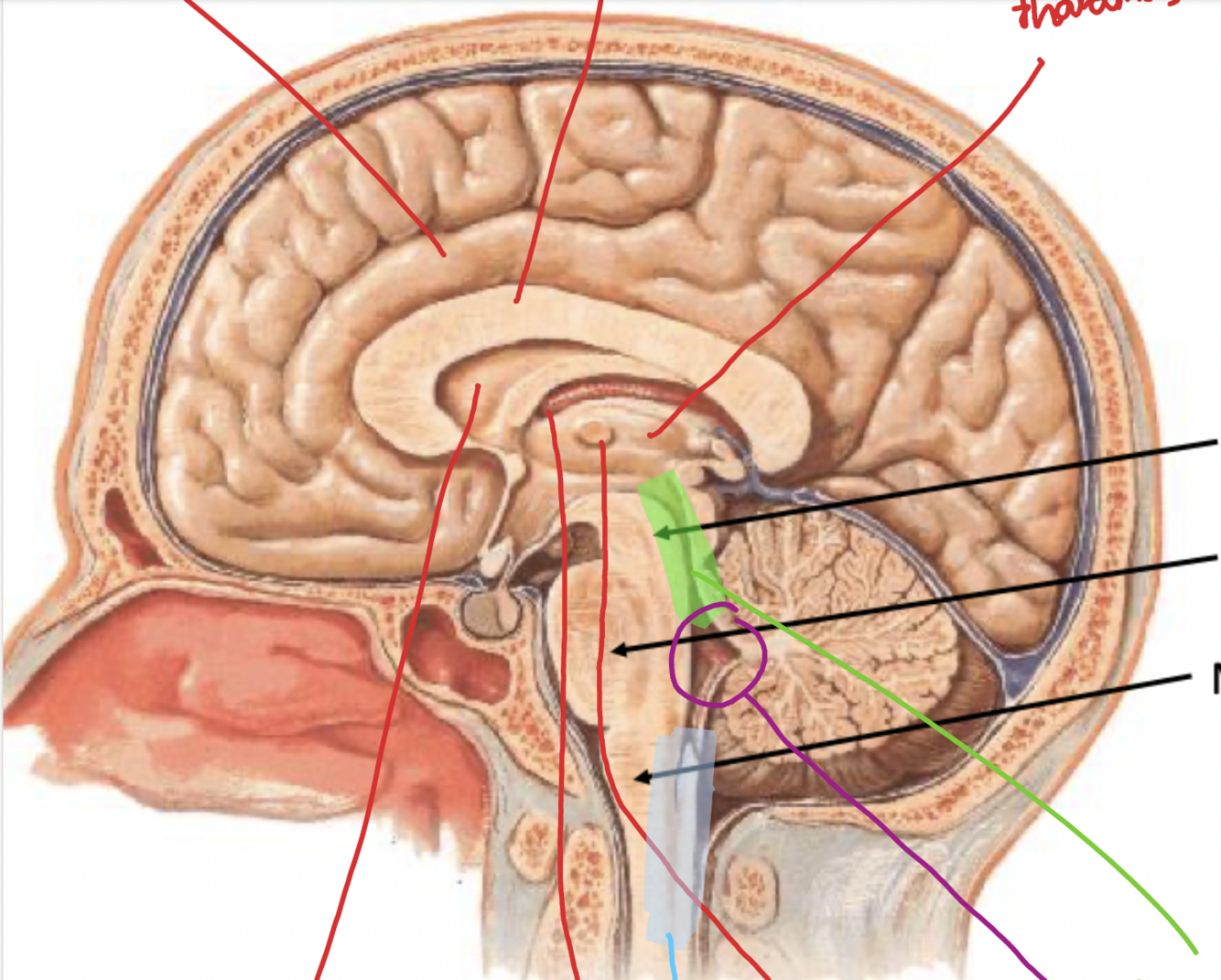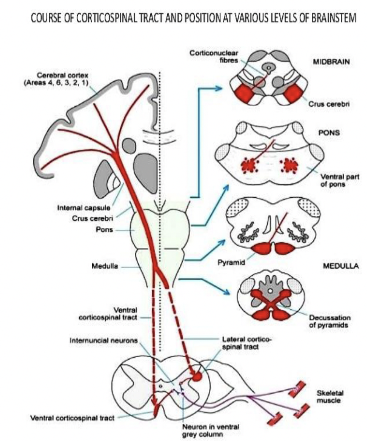 corticospinal= main motor tract, runs through all of the brainstem