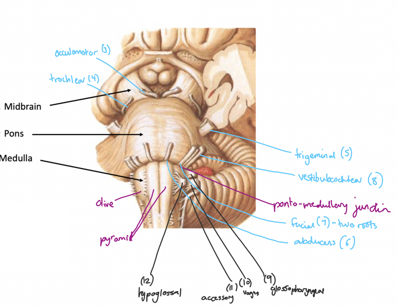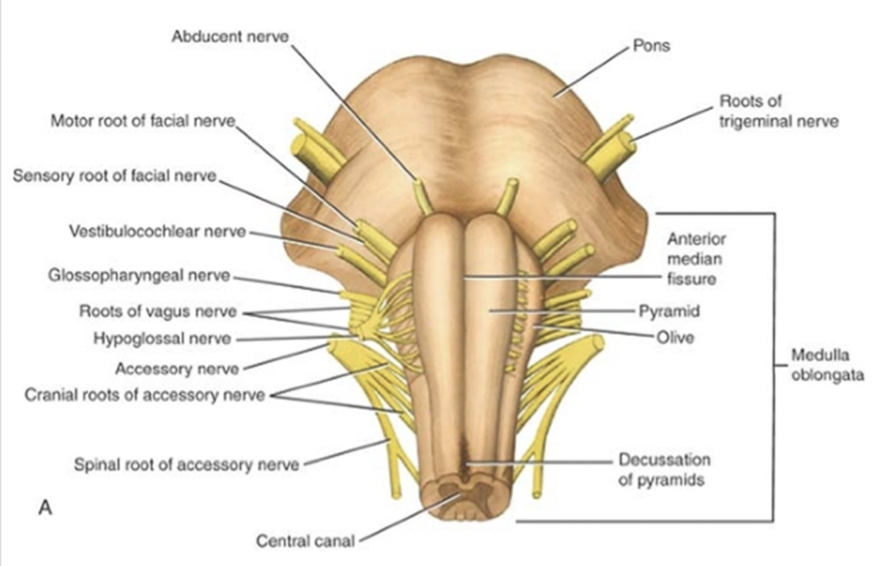 Label this anterior view of the brainstem