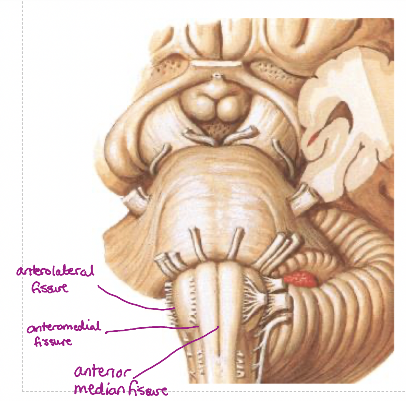 Label the external features of the ventral medulla
