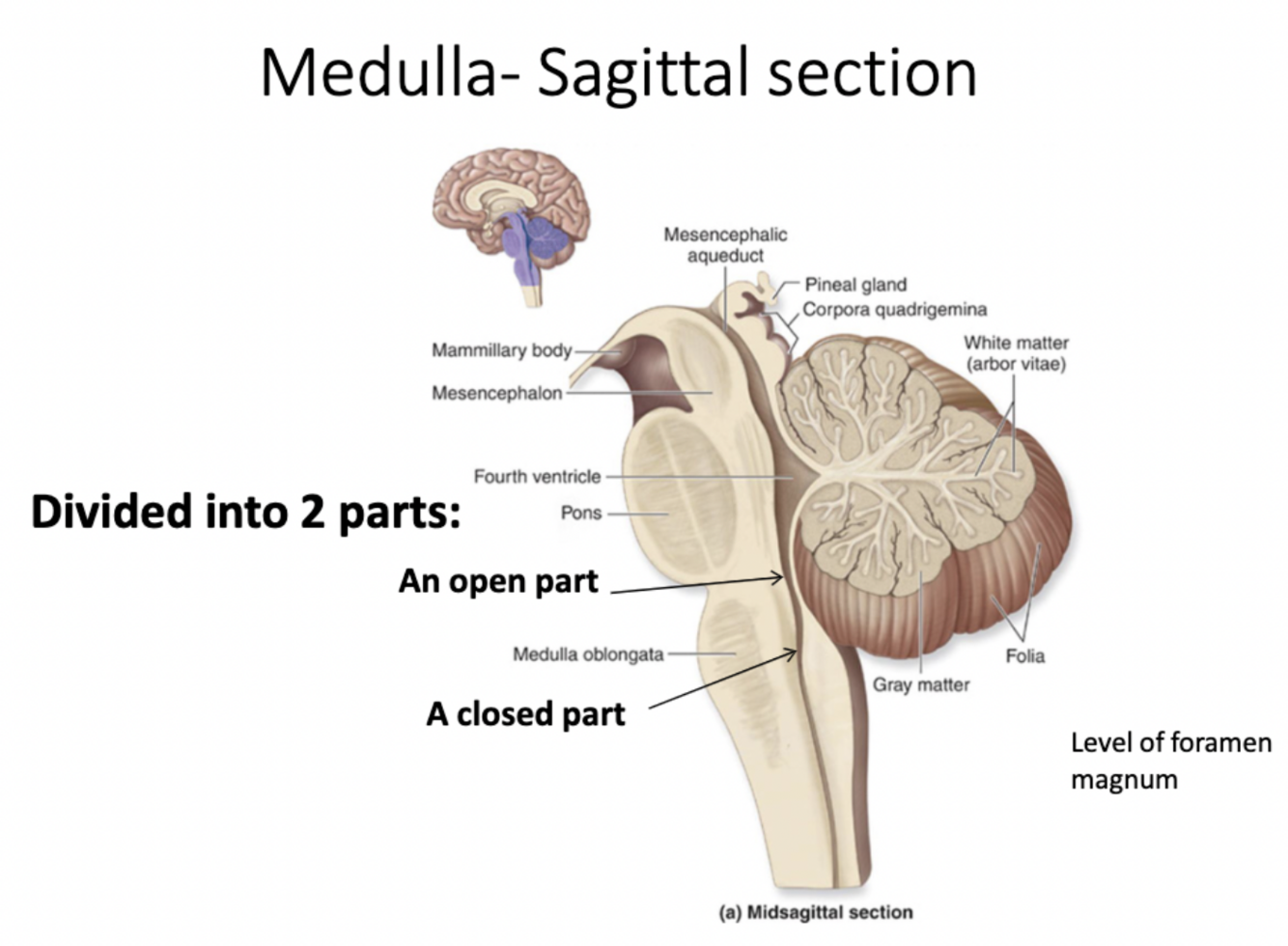 As you go up the medulla central canal opens up into the fourth ventricle, this is the open part of the medulla
