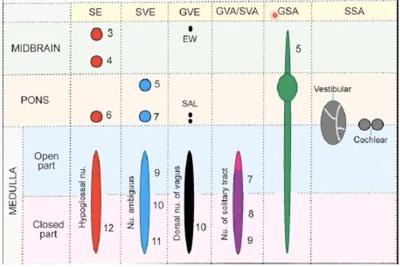 CN1 and CN2: Olfactory and optic sensory nerve. From eye and nose. No connection to the brain stem directly, no nuclei from it
