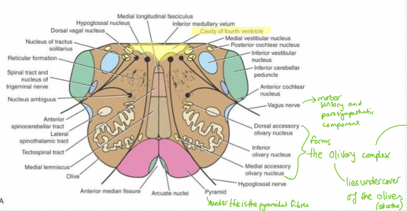 Describe and explain the mid olivary level