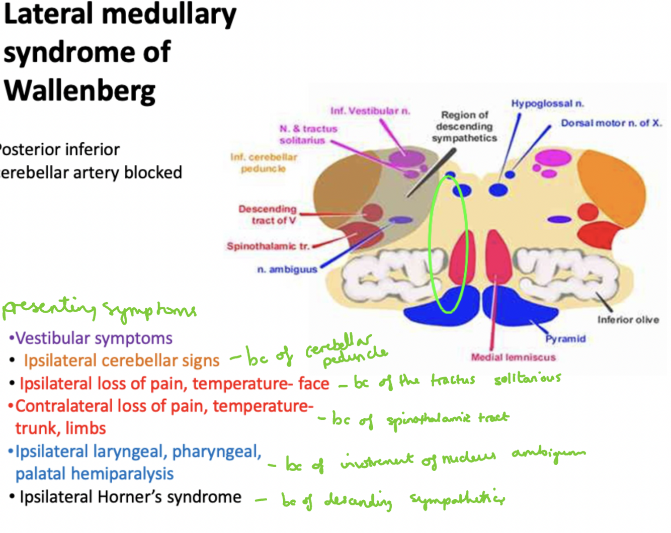 Descending Tracts: Spinal tract of trigeminal nerve, which carries pain and temp sensations from the face and neck