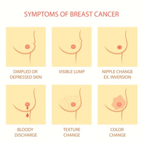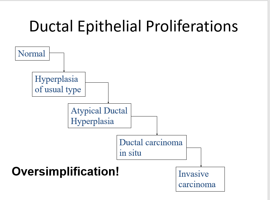 Ductal or lobular carcinoma (arising from duct tissue or lobular tissue respectively)