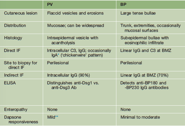 Quelles sont les différences entre le pemphigus vulgaire et la pemphigoïde bulleuse?