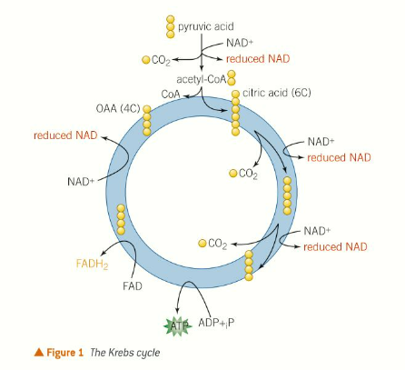 3) Acetyl CoA delivers acetyl group to Krebs cycle, NADH used in oxidative phosphorylation