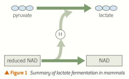 1) Pyruvate acts ad hydrogen acceptor taking hydrogen from NAD catalysed by lactate dehydrogenase