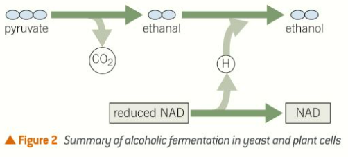 2) Ethanal accepts H atom from reduced NAD becoming ethanol