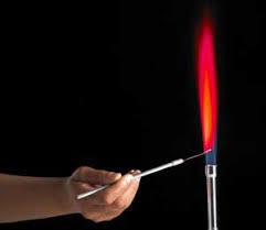 What colour does the flame go when testing lithium compounds?