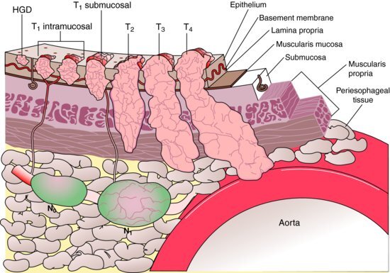 Invade o tecido paraesofagiano, mas não invade estruturas adjacentes
