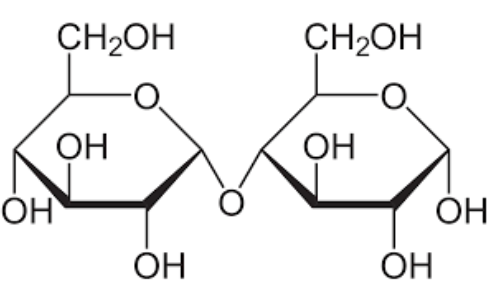 b) A maltose molecule can be converted back into two glucose molecules via hydrolysis reaction.