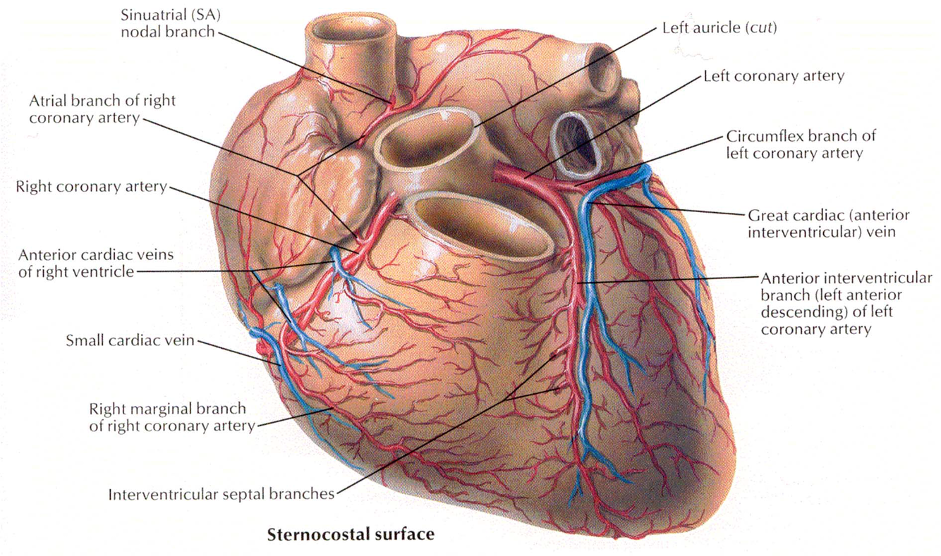 When injecting contrast into the arteries of the heart, how would you ensure that the contrast enters the anterior interventricular artery? Why?