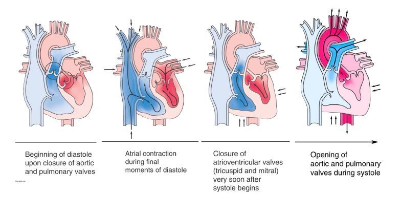 What are the general hemodynamics of the heart as it moves from diastole to systole?
