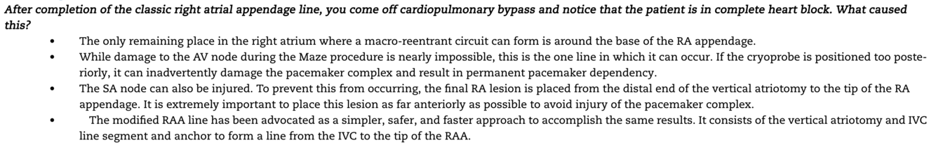 Cause of complete heart block after the MAZE?