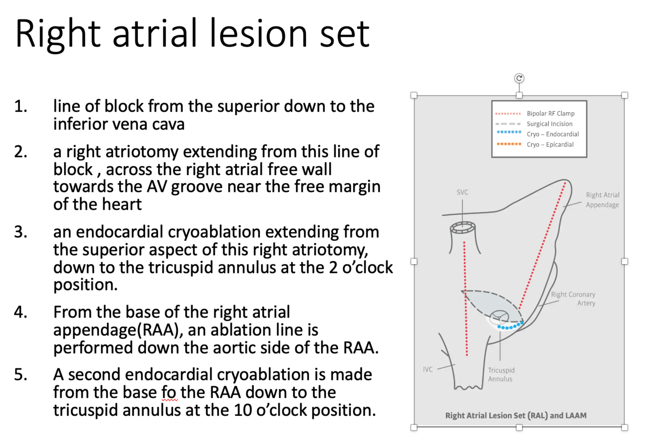 Describe the right atrial lesion set?