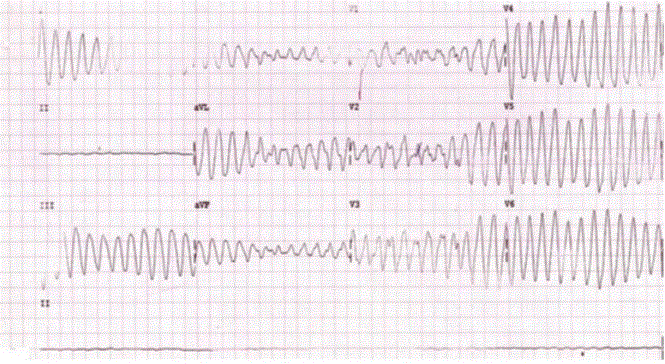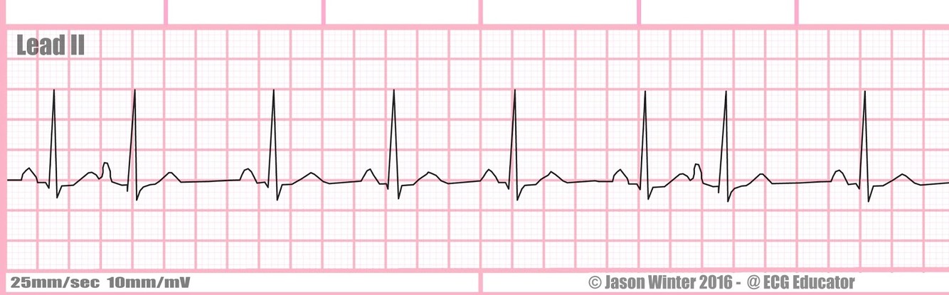 The following ECG (paper speed 25 mm/sec) was recorded from a 3-year old cow. Which of the following would be the MOST correct interpretation of the rhythm?