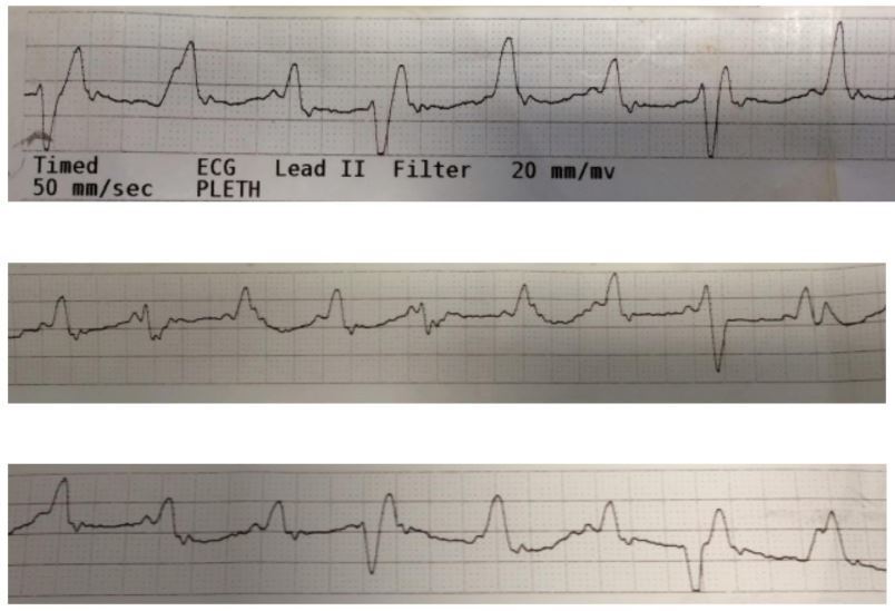 *Narrowed QRS complexes and T wave deformed, with a peak appereance
