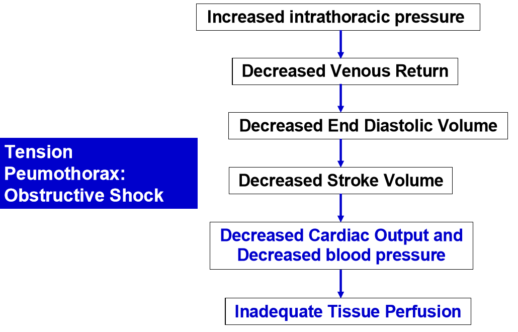How does a tension pneumothroax lead to poor tissue perfusion ?