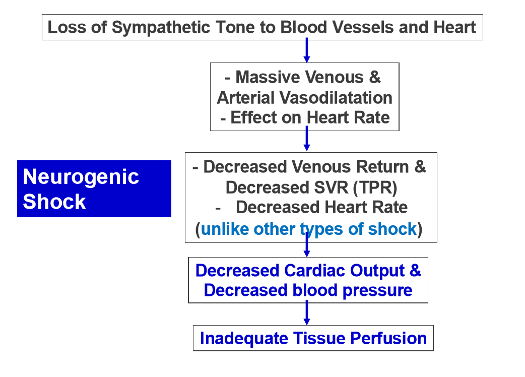 How does neurogenic distributive shock cause poor tissue perfusion ?