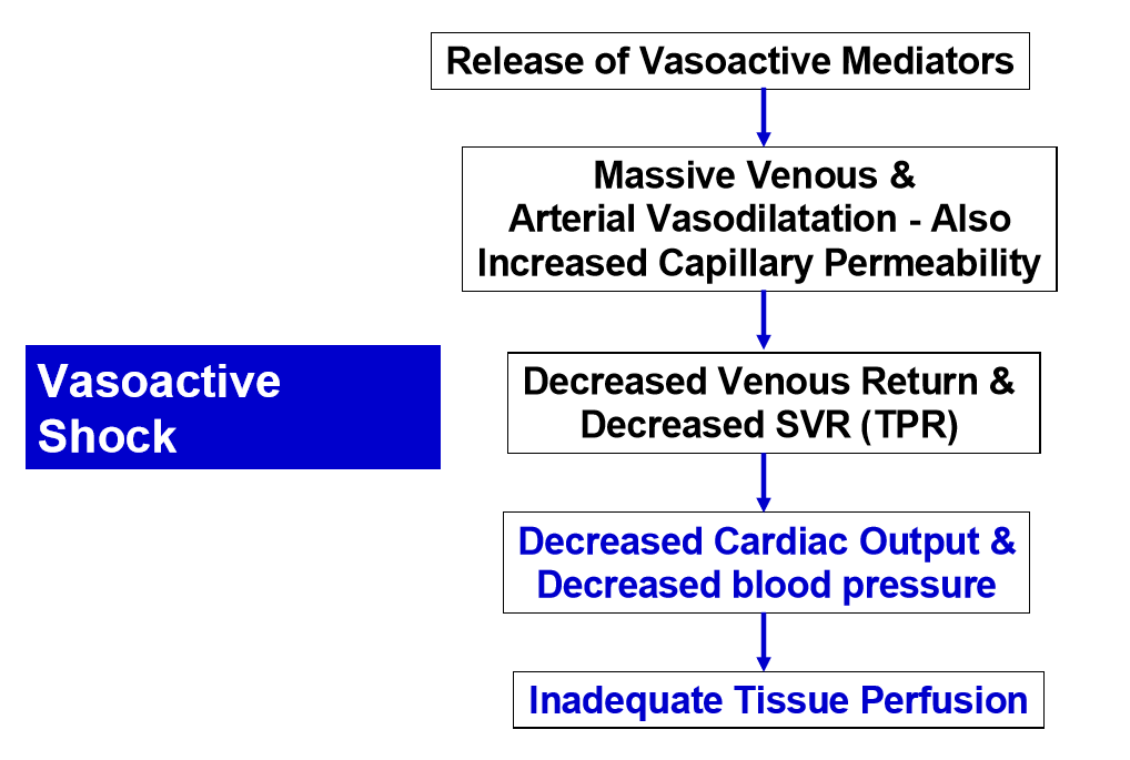 How does vasoactive distributive shock cause poor tissue perfusion ?