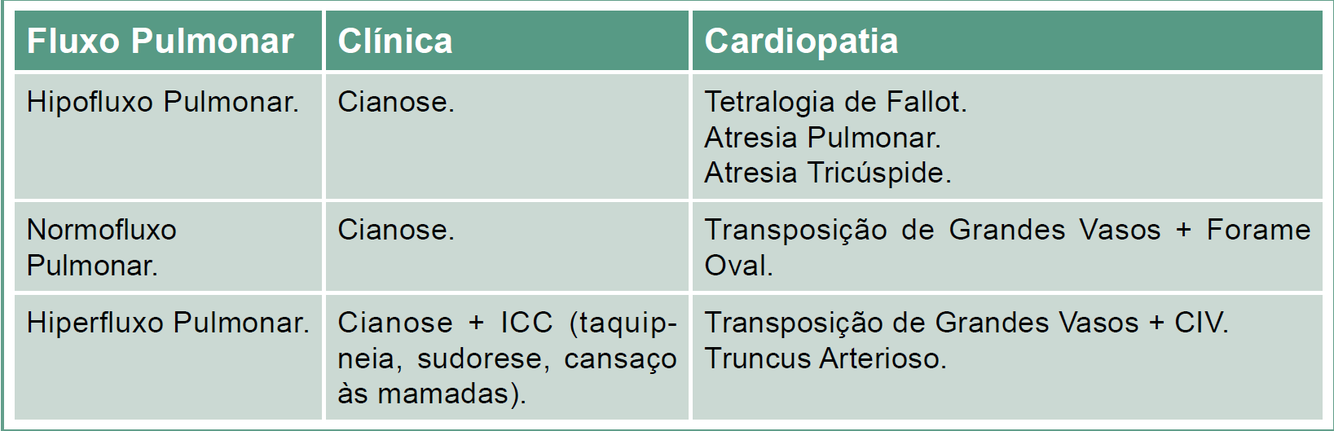 Quais as principais CCC? Correlacione com o fluxo pulmonar.