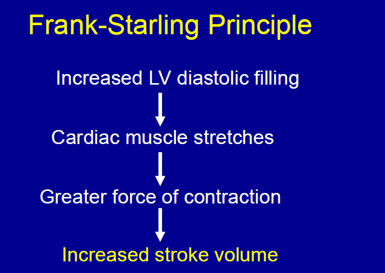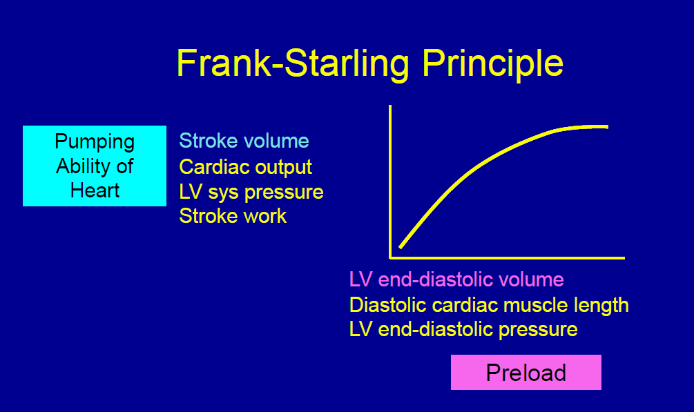 Frank starling curve - effect of increased and decreased preload