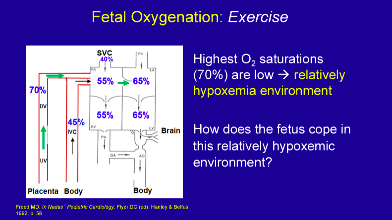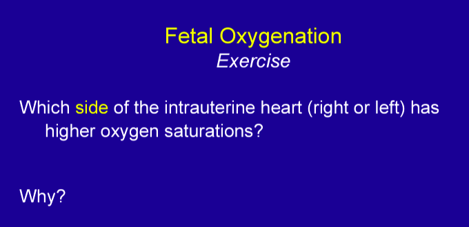 O2 sat in chambers of fetal circulation.