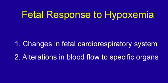 Preferentially sends blood to head, heart, adrenal glands (by dilating ductus venosus to increase blood to RA -> LA via FO). Abd circumference decrease in FGR fetuses (b/c less BF to those organs) and elevated MCA (diastolic flow increased as more BF to brain)