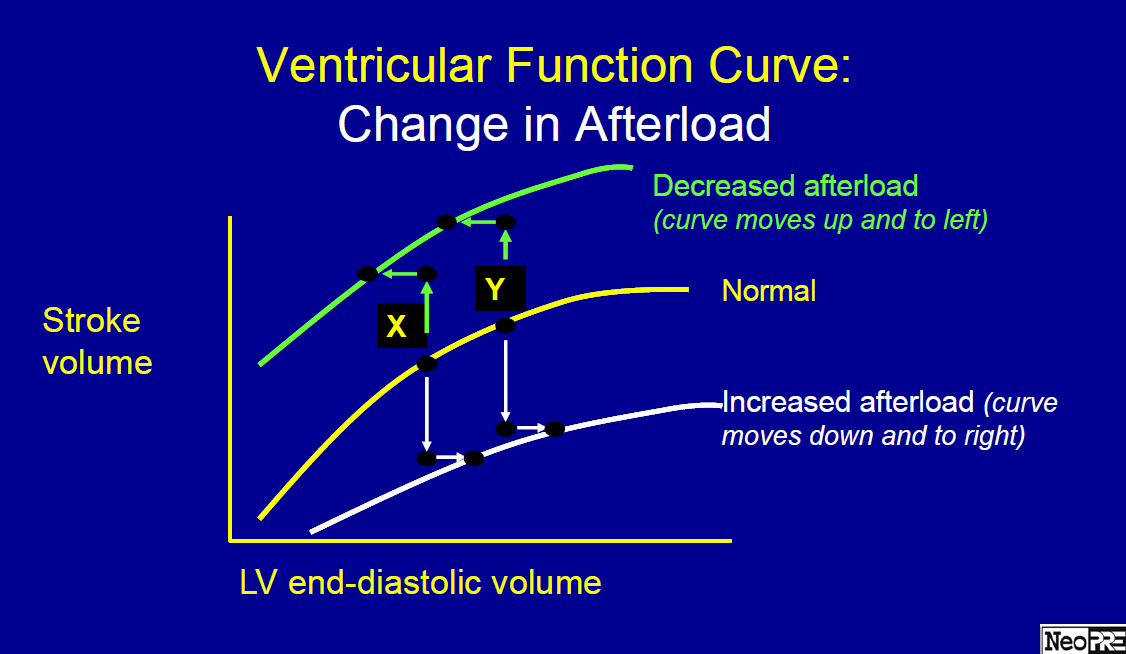 Frank starling curve - effect of increased and decreased afterload
