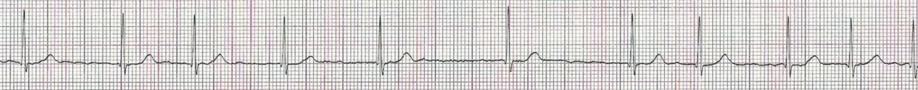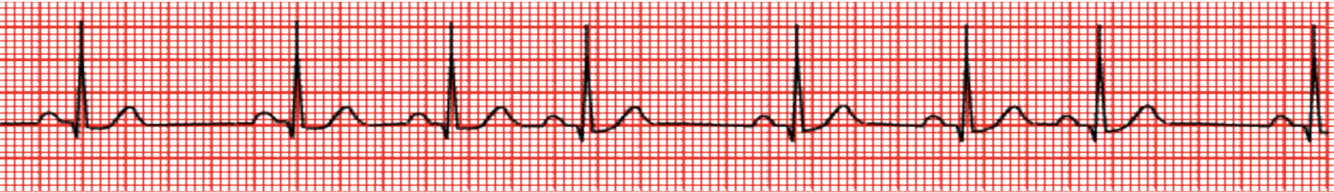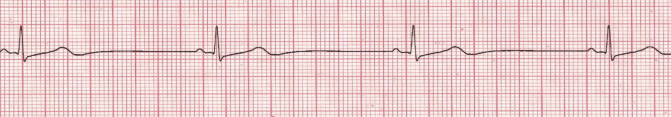 This rhythm is the same as NSR but rate is less than 60 BPM. This rhythm can be caused by vagal stimulation leading to nodal slowing or by medicines such as beta blockers. Commonly found in some well conditioned athletes.