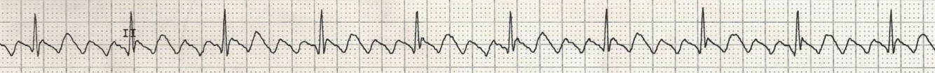 This rhythm is the same as NSR however the QRS complexes are not evenly spaced due to the normal respiratory variation, becoming slower during exhalation and faster upon inhalation.