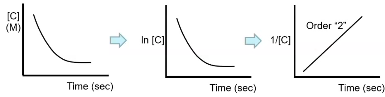 What does the following 2nd order graph look like for Ln(conc) against time and 1/(conc) against time