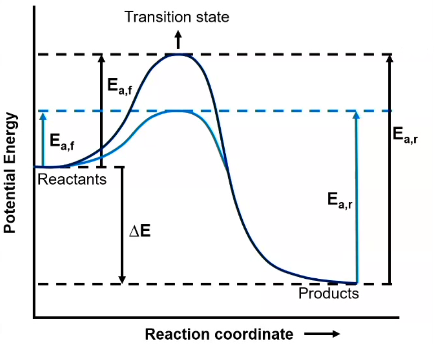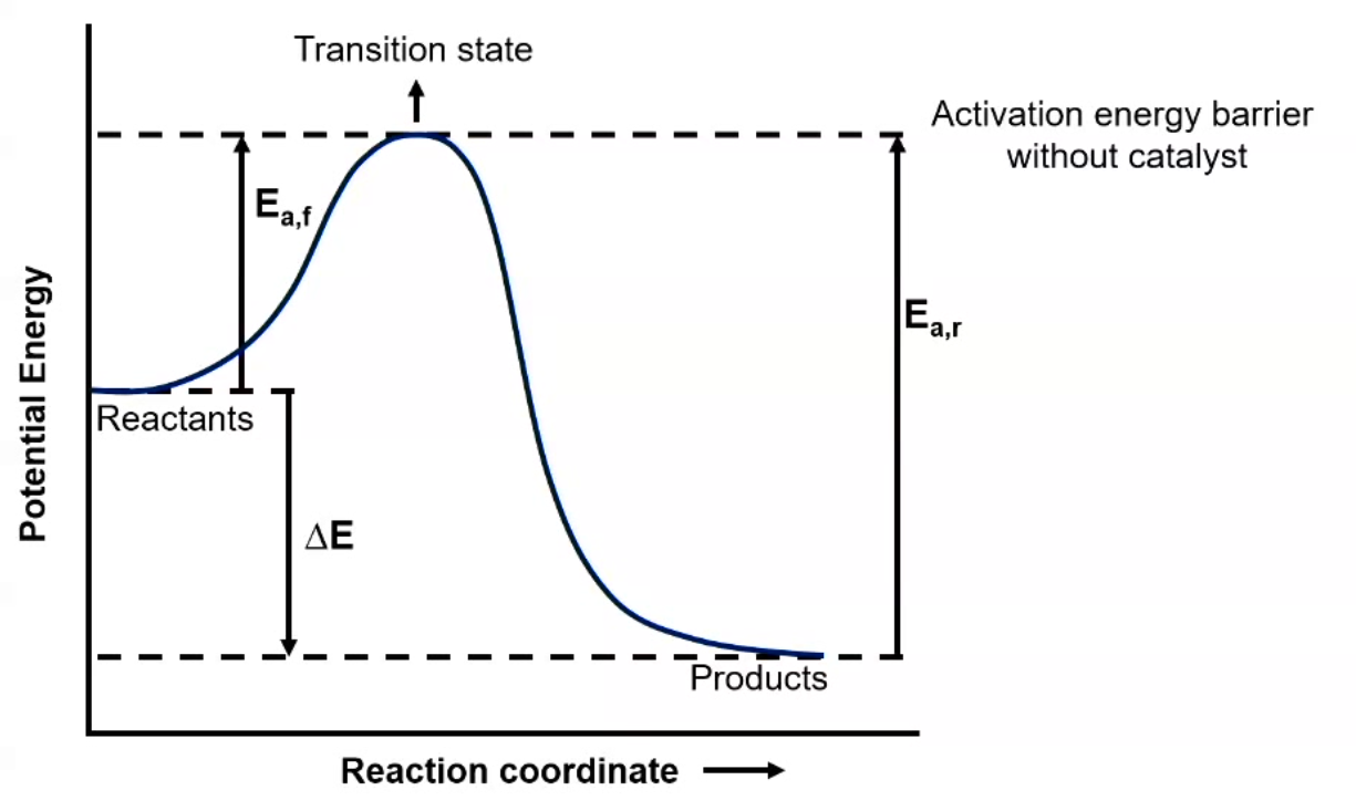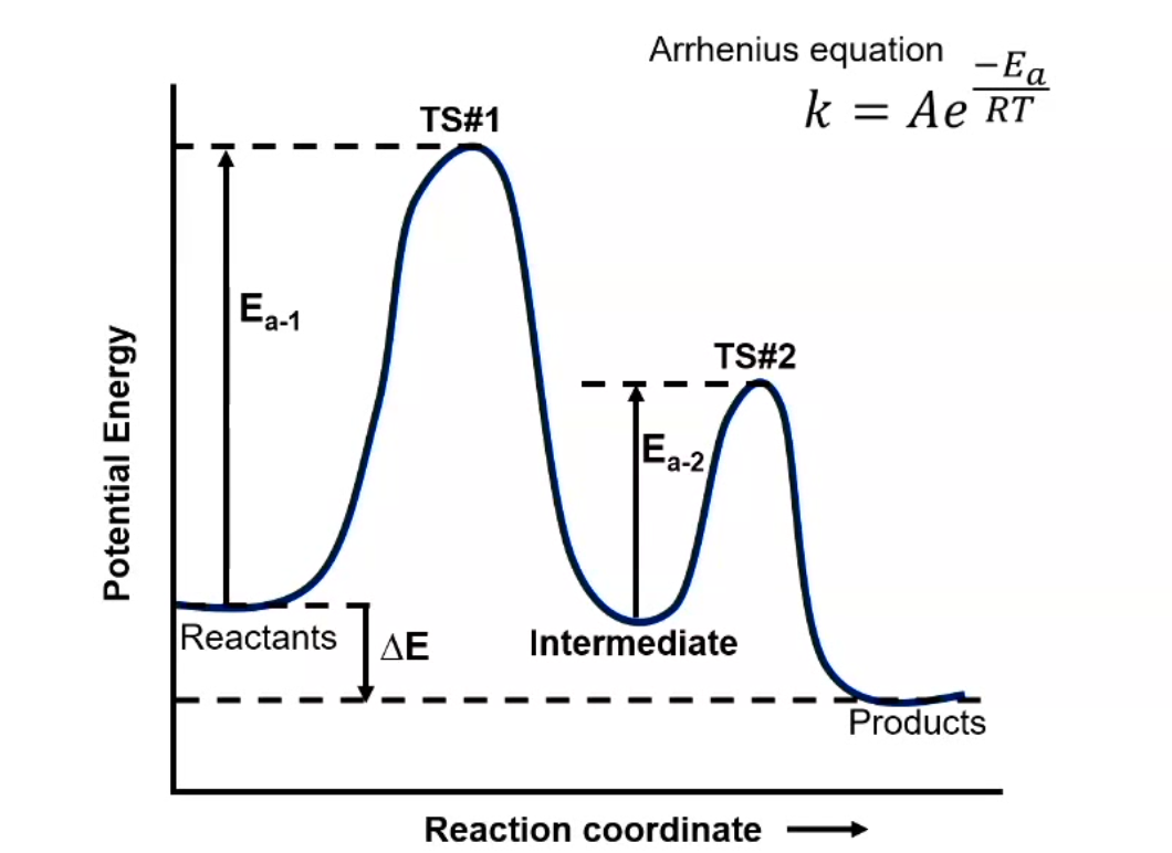 Draw an energy diagram for a catalysed reaction with two transition states? Define the rate determining step and explain reasoning?