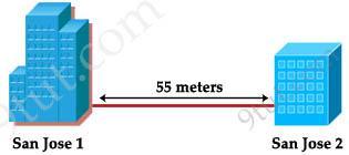 Refer to the exhibit. Two buildings on the San Jose campus of a small company must be connected to use Ethernet with a bandwidth of at least 100 Mbps. The company is concerned about possible problems from voltage potential difference between the two buildings. Which media type should be used for the connection?