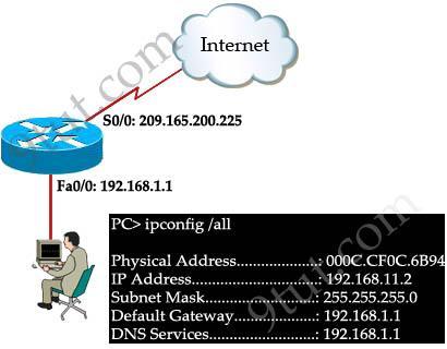 The IP address of the PC (192.168.11.2/24) is not on the same network with its gateway 192.168.1.1 -> C is correct.