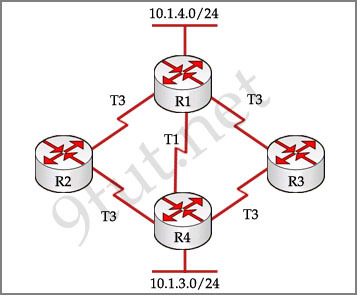 A – When RIPv2 is the routing protocol, only the path R1-R4 is to be installed into the routing table by default